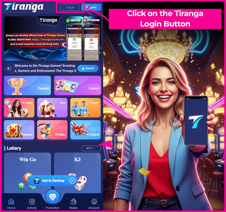 Follow these easy steps to register yourself on the Tiranga platform and start exploring the games and entertainment options: